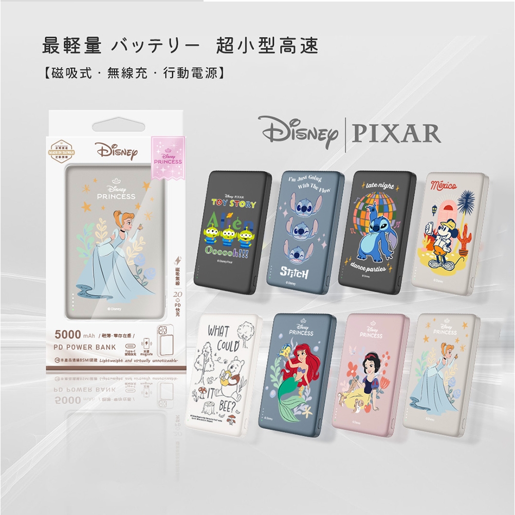 Disney 迪士尼 P-160 10000mAh 20W 超薄磁吸無線充行動電源(米奇/三眼怪/維尼/小美人魚/灰姑娘)